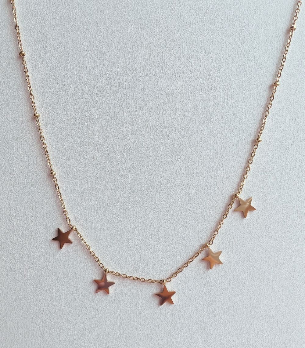 Cadena delgada con dijes en acero inoxidable.